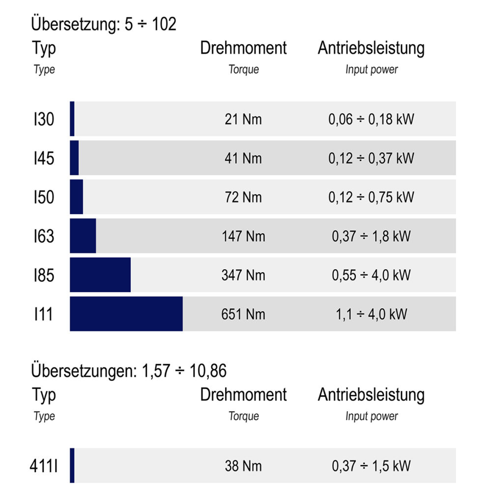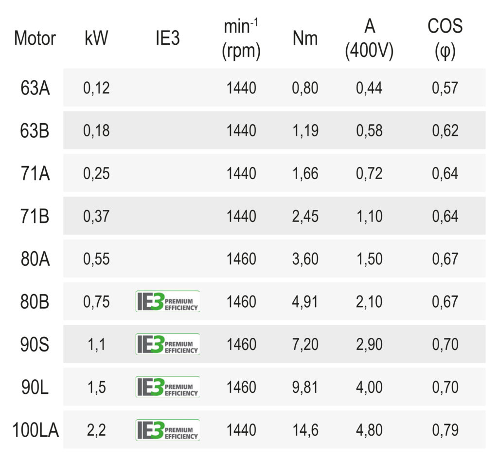 • Die Motore sind dank verlustarmer Statorbleche, Vakuumimprägnierung der Wicklungen und Magnetdrahte für Umrichterbetrieb mit großem Regelbereich bei konstantem Drehmoment optimiert.